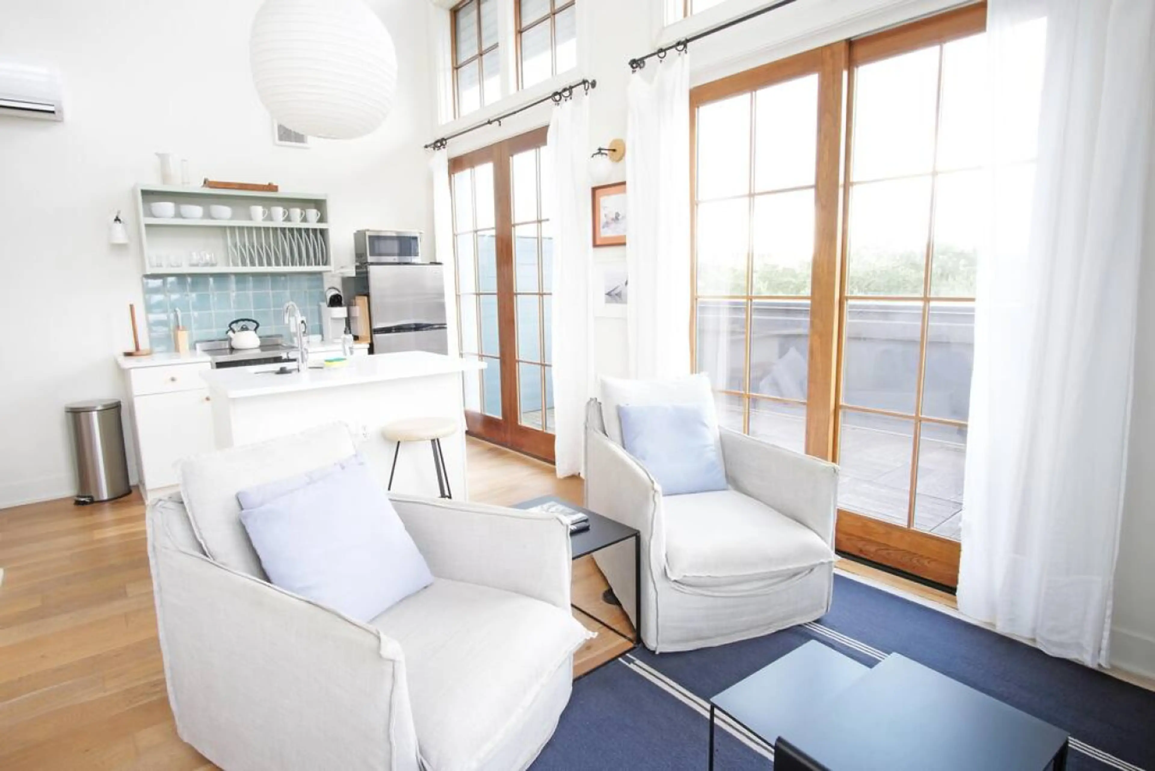 Experience the charm and vibrancy of Savannah in this beautifully appointed two-bedroom unit. Perfect for couples or a small family, this fourth-floor walkup offers stunning views of the city, river, and iconic Talmadge Bridge from your own private patio. Enjoy the convenience of a full kitchen, was...